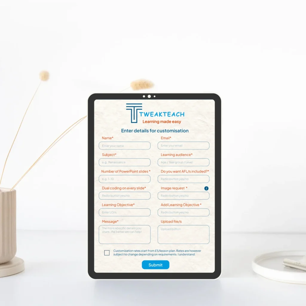 While AI can be helpful for generating ideas, at Tweakteach we prioritise accuracy and depth. All our lesson plans are thoroughly researched using both primary and secondary sources to ensure high-quality content.